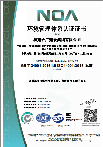 福建合廣建設集團有限公司,注冊資本5188萬元人民幣,公司位于廈門市同安區鳳山一里151-17號。本公司成立于2013年,公司具備市政公用工程、水利水電工程、房屋建筑工程、公路工程、園林綠化等多專業施工資質。企業從業人員100多人,各類專業技術人員70多人,其中高級職稱8人,中級職稱40多人,一級建造師6人,二級建造師15多人。